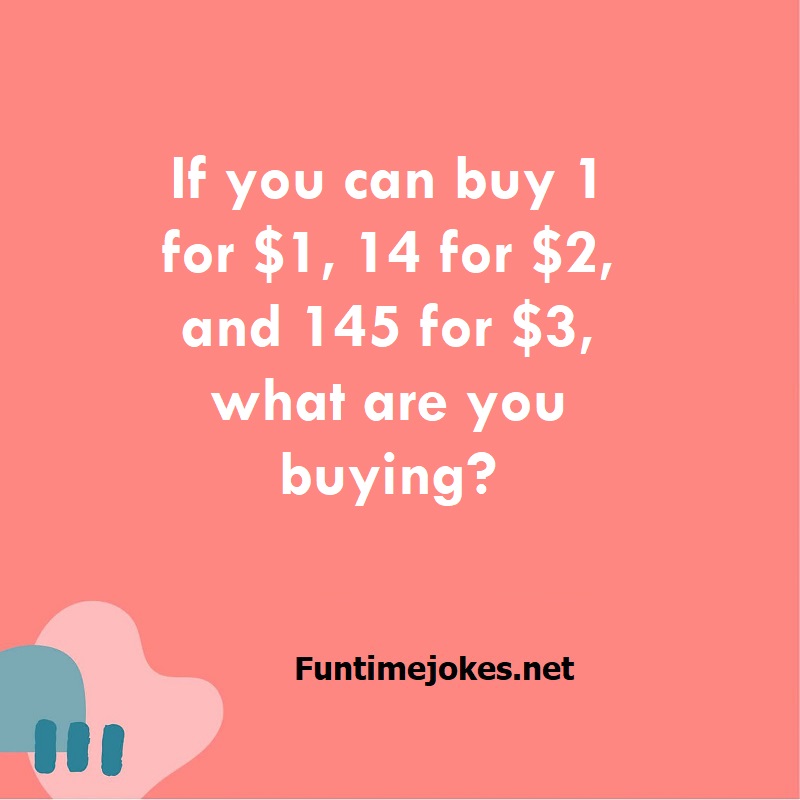 If you can buy 1 for $1, 14 for $2, and 145 for $3, what are you buying? is one of the best riddle of the day.We have best collections of riddles, You can see our best collection of Tricky Riddles with Answer