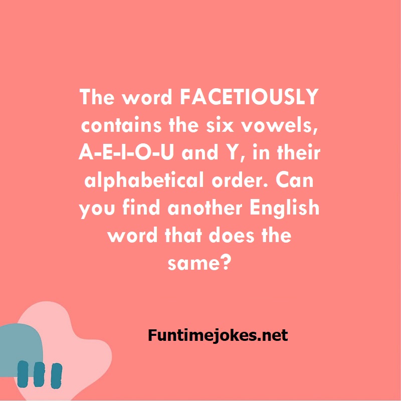 The word FACETIOUSLY contains the six vowels, A-E-I-O-U and Y, in their alphabetical order. Can you find another English word that does the same? is one of the best riddle of the day.We have best collections of riddles, You can see our best collection of Tricky Riddles with Answer