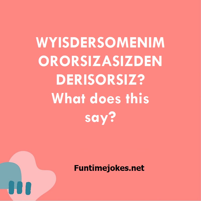 WYISDERSOMENIMORORSIZASIZDENDERISORSIZ? What does this say? is one of the best riddle of the day.We have best collections of riddles, You can see our best collection of Tricky Riddles with Answer