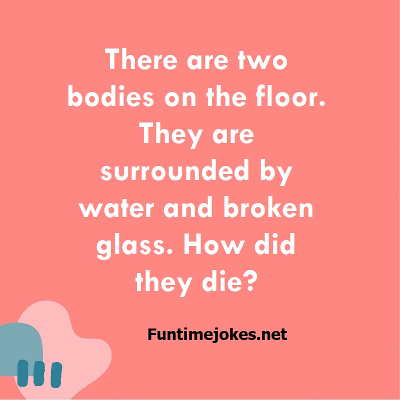 There are two bodies on the floor. They are surrounded by water and broken glass. How did they die? is one of the best riddle of the day.We have best collections of riddles, You can see our best collection of Tricky Riddles with Answer