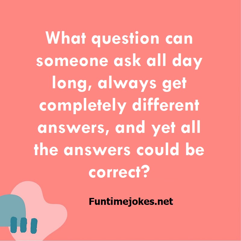 What question can someone ask all day long, always get completely different answers, and yet all the answers could be correct? is one of the best riddle of the day.We have best collections of riddles, You can see our best collection of Tricky Riddles with Answer
