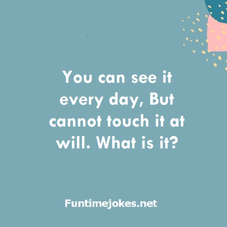 You can see it every day, But cannot touch it at will. What is it? is one of the best riddle of the day.We have best collections of riddles, You can see our best collection of Tricky Riddles with Answer