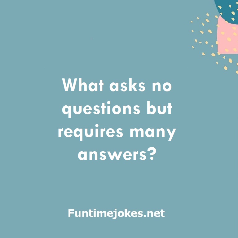 What asks no questions but requires many answers? is one of the best riddle of the day.We have best collections of riddles, You can see our best collection of Tricky Riddles with Answer