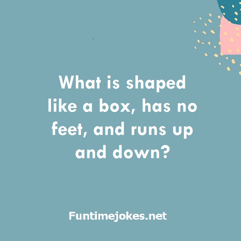 What is shaped like a box, has no feet, and runs up and down? is one of the best riddle of the day.We have best collections of riddles, You can see our best collection of Tricky Riddles with Answer