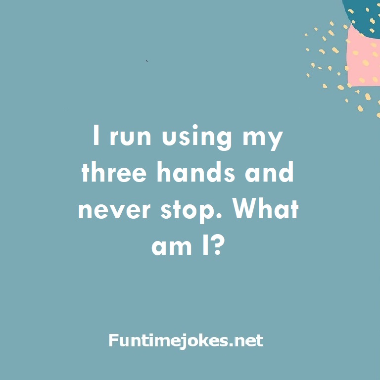I run using my three hands and never stop. What am I? is one of the best riddle of the day.We have best collections of riddles, You can see our best collection of Tricky Riddles with Answer