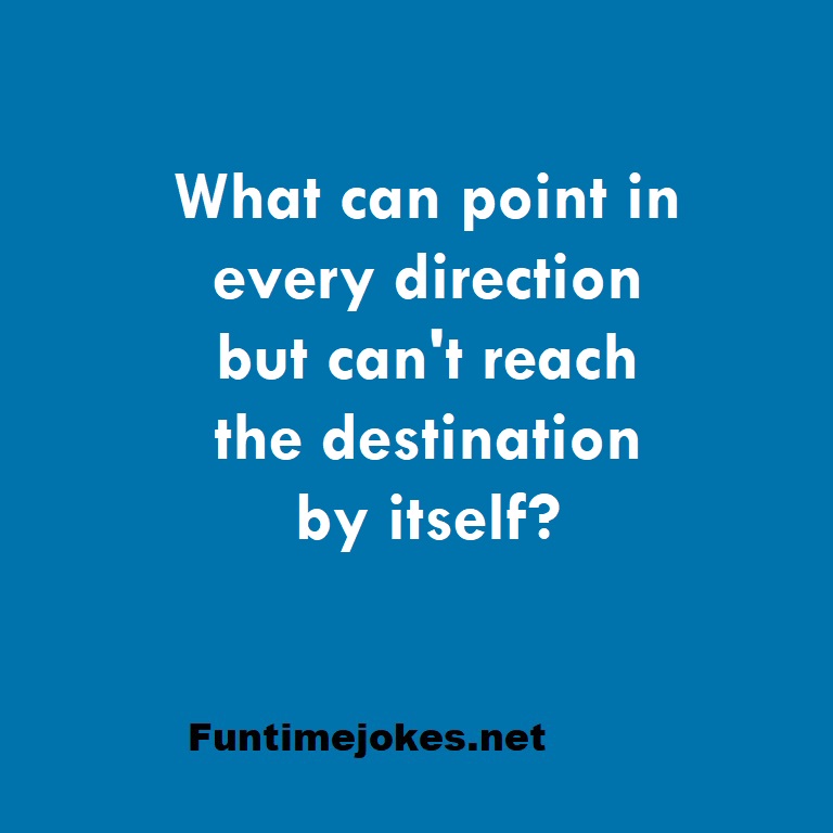 What can point in every direction but can't reach the destination by itself? is one of the best riddle of the day.We have best collections of riddles, You can see our best collection of Tricky Riddles with Answer