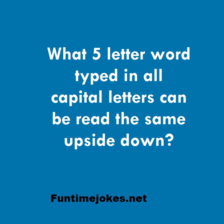 What 5 letter word typed in all capital letters can be read the same upside down? is one of the best riddle of the day.We have best collections of riddles, You can see our best collection of Tricky Riddles with Answer