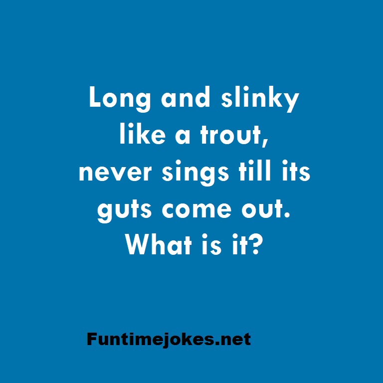 Long and slinky like a trout, never sings till its guts come out. What is it? is one of the best riddle of the day.We have best collections of riddles, You can see our best collection of Tricky Riddles with Answer