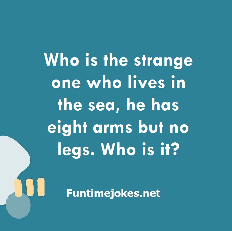 Who is the strange one who lives in the sea, he has eight arms but no legs. Who is it? is one of the best riddle of the day.We have best collections of riddles, You can see our best collection of Tricky Riddles with Answer