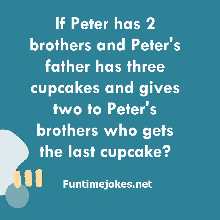 If Peter has 2 brothers and Peter's father has three cupcakes and gives two to Peter's brothers who gets the last cupcake? is one of the best riddle of the day.We have best collections of riddles, You can see our best collection of Tricky Riddles with Answer