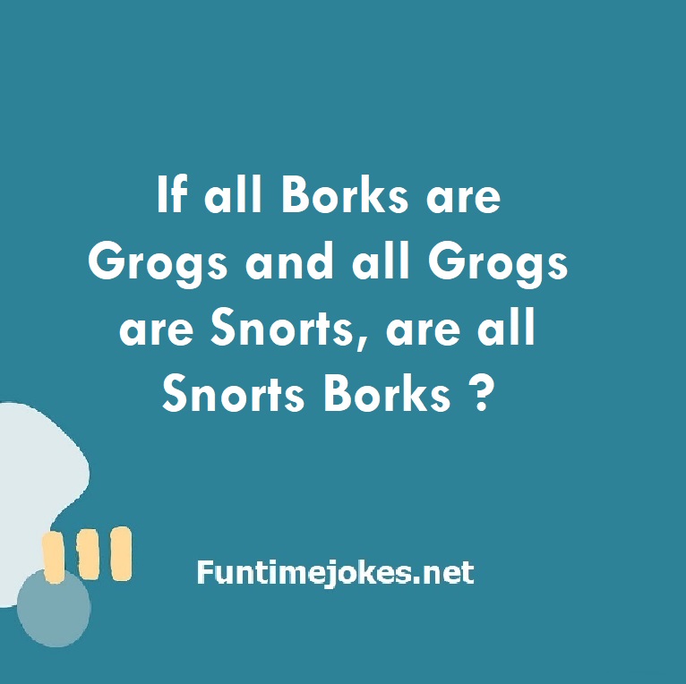If all Borks are Grogs and all Grogs are Snorts, are all Snorts Borks ? is one of the best riddle of the day.We have best collections of riddles, You can see our best collection of Tricky Riddles with Answer