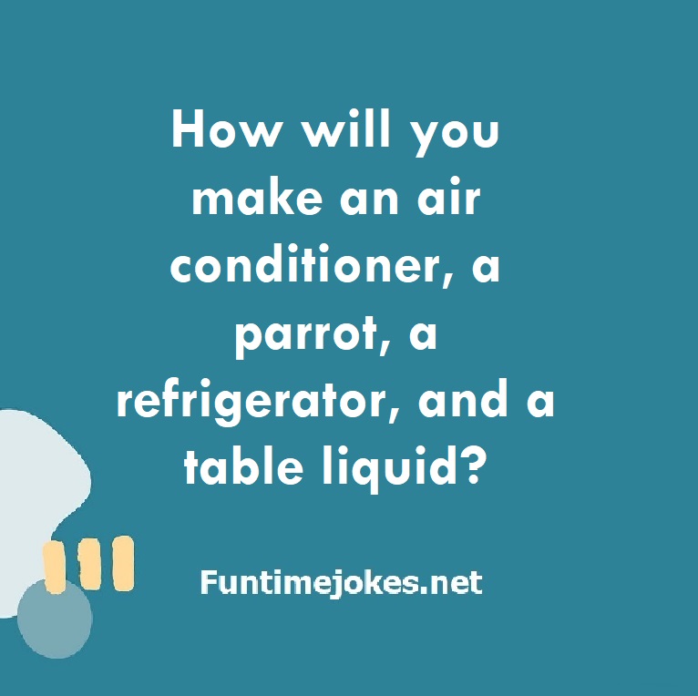 How will you make an air conditioner, a parrot, a refrigerator, and a table liquid? is one of the best riddle of the day.We have best collections of riddles, You can see our best collection of Tricky Riddles with Answer