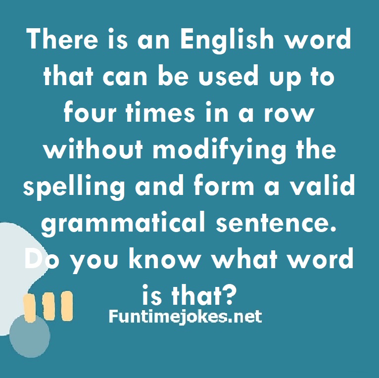 There is an English word that can be used up to four times in a row without modifying the spelling and form a valid grammatical sentence. Do you know what word is that? is one of the best riddle of the day.We have best collections of riddles, You can see our best collection of Tricky Riddles with Answer