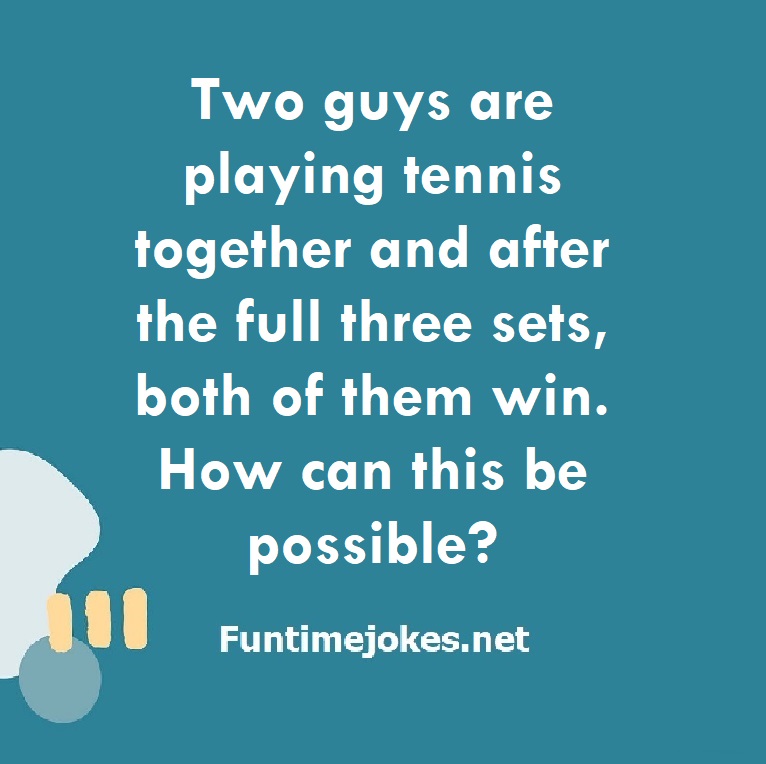 Two guys are playing tennis together and after the full three sets, both of them win. How can this be possible? is one of the best riddle of the day.We have best collections of riddles, You can see our best collection of Tricky Riddles with Answer