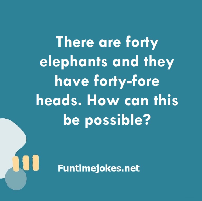 There are forty elephants and they have forty-fore heads. How can this be possible? is one of the best riddle of the day.We have best collections of riddles, You can see our best collection of Tricky Riddles with Answer