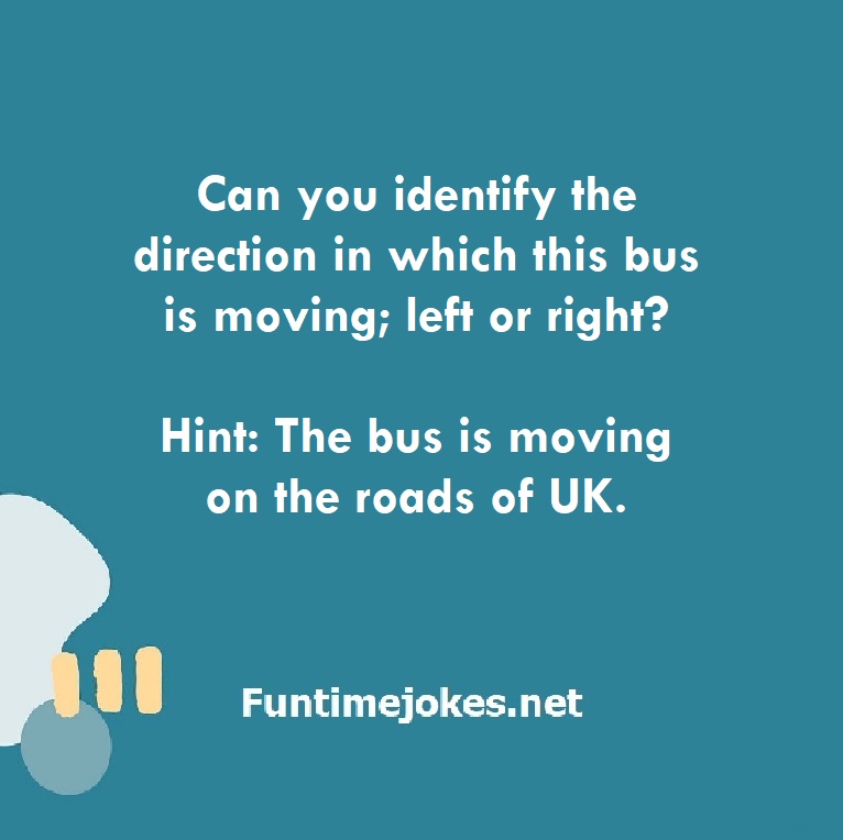 Can you identify the direction in which this bus is moving; left or right? Hint: The bus is moving on the roads of UK. is one of the best riddle of the day.We have best collections of riddles, You can see our best collection of Tricky Riddles with Answer