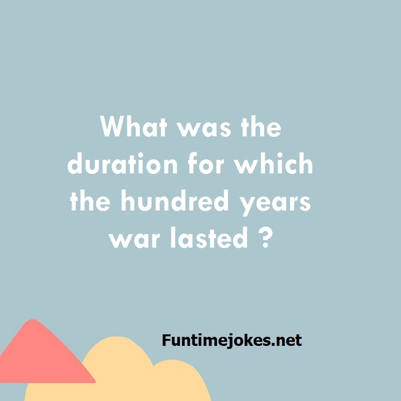 What was the duration for which the hundred years war lasted ? is one of the best riddle of the day.We have best collections of riddles, You can see our best collection of Tricky Riddles with Answer
