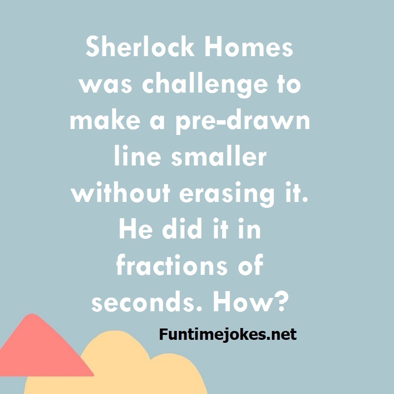 Sherlock Homes was challenge to make a pre-drawn line smaller without erasing it. He did it in fractions of seconds. How? is one of the best riddle of the day.We have best collections of riddles, You can see our best collection of Tricky Riddles with Answer