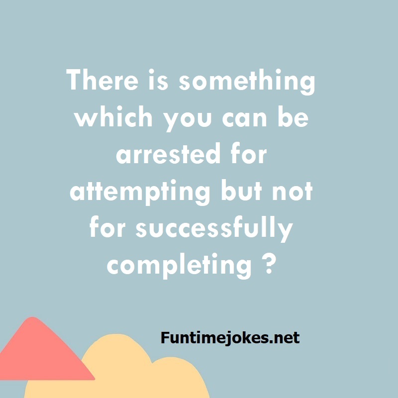 There is something which you can be arrested for attempting but not for successfully completing ? is one of the best riddle of the day.We have best collections of riddles, You can see our best collection of Tricky Riddles with Answer