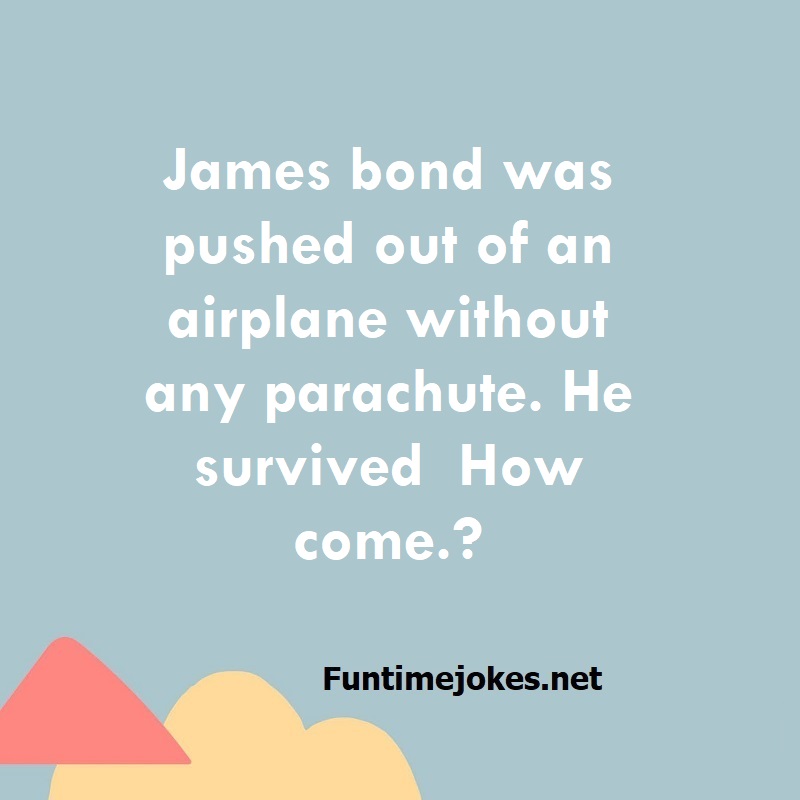 James bond was pushed out of an airplane without any parachute. He survived How come.? is one of the best riddle of the day.We have best collections of riddles, You can see our best collection of Tricky Riddles with Answer