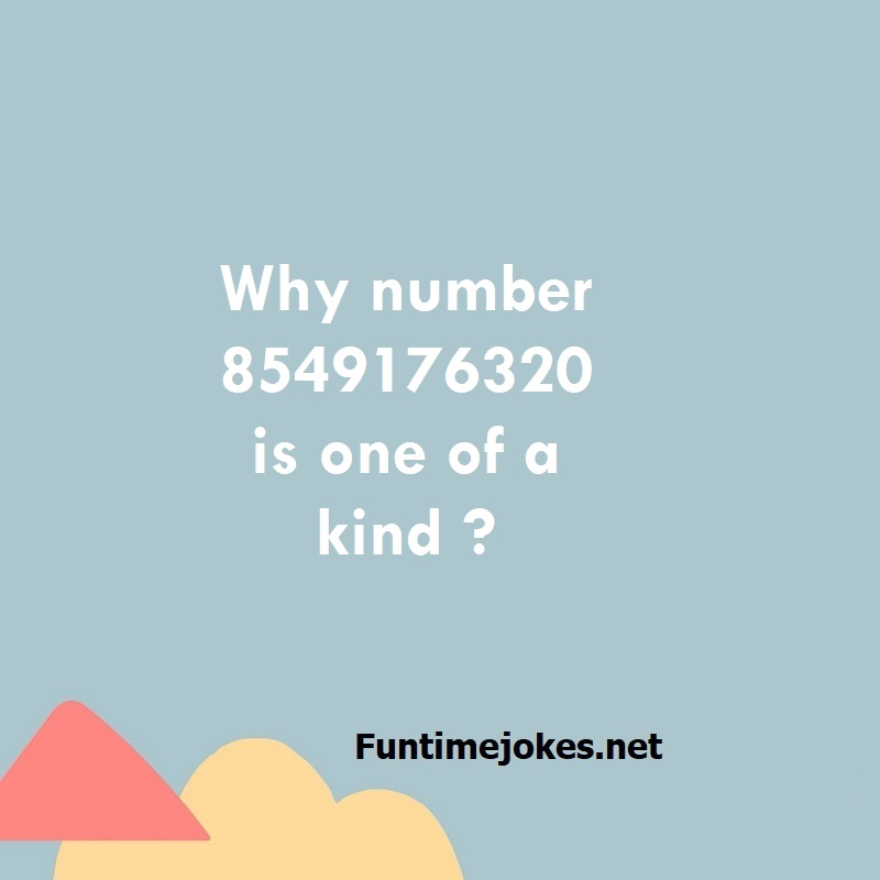 Why number 8549176320 is one of a kind ? is one of the best riddle of the day.We have best collections of riddles, You can see our best collection of Tricky Riddles with Answer