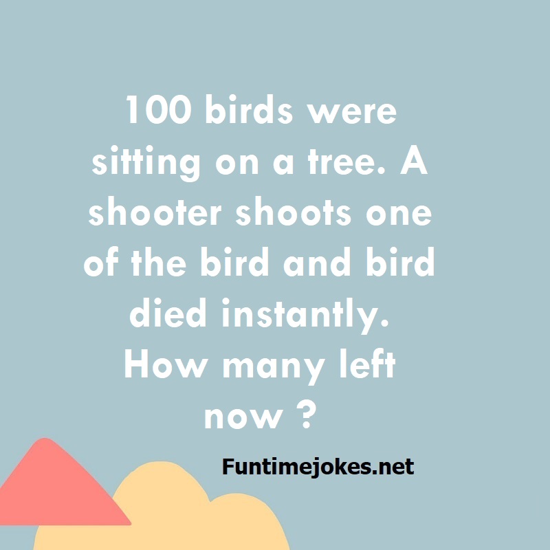 100 birds were sitting on a tree. A shooter shoots one of the bird and bird died instantly. How many left now ? is one of the best riddle of the day.We have best collections of riddles, You can see our best collection of Tricky Riddles with Answer