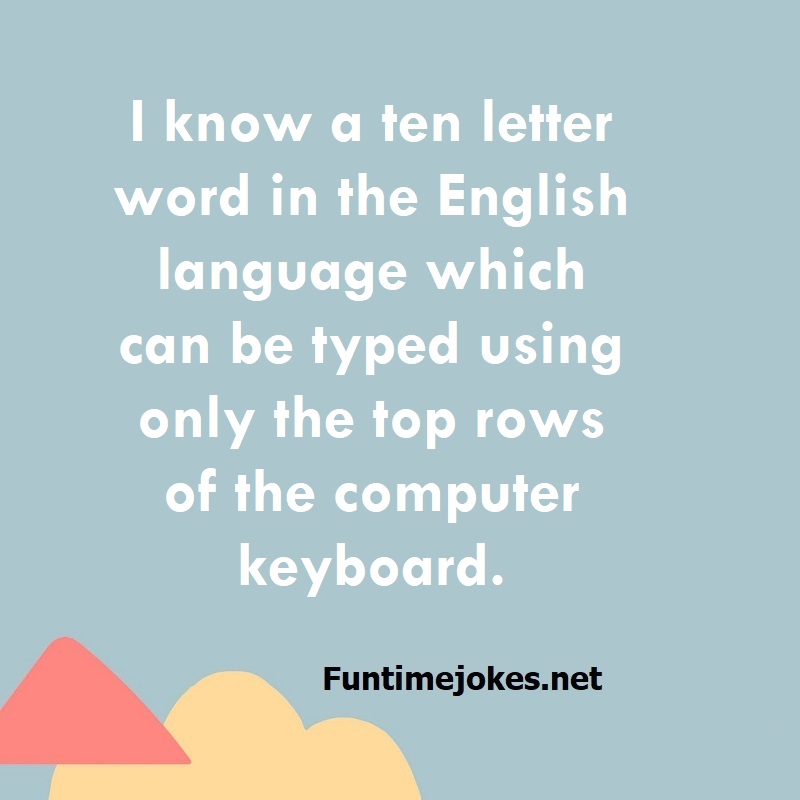 I know a ten letter word in the English language which can be typed using only the top rows of the computer keyboard. is one of the best riddle of the day.We have best collections of riddles, You can see our best collection of Tricky Riddles with Answer