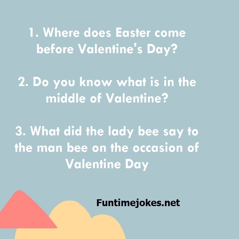 1. Where does Easter come before Valentine's Day? 2. Do you know what is in the middle of Valentine? 3. What did the lady bee say to the man bee on the occasion of Valentine Day is one of the best riddle of the day.We have best collections of riddles, You can see our best collection of Tricky Riddles with Answer
