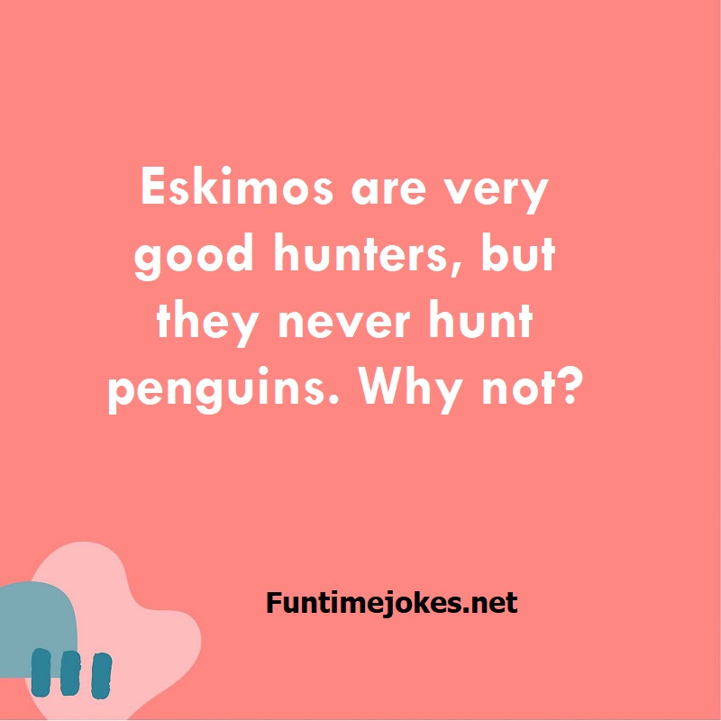 Eskimos are very good hunters, but they never hunt penguins. Why not? is one of the best riddle of the day.We have best collections of riddles, You can see our best collection of Tricky Riddles with Answer