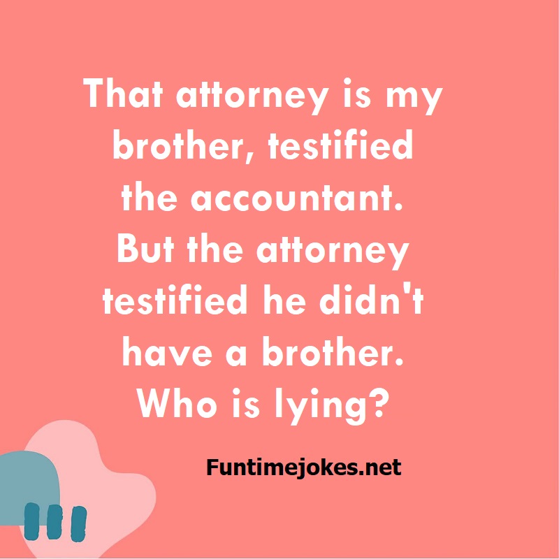 That attorney is my brother, testified the accountant. But the attorney testified he didn't have a brother. Who is lying? is one of the best riddle of the day.We have best collections of riddles, You can see our best collection of Tricky Riddles with Answer