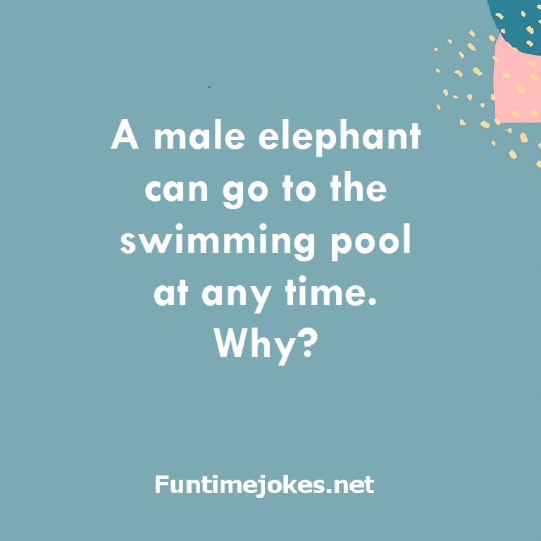 A male elephant can go to the swimming pool at any time. Why? is one of the best riddle of the day.We have best collections of riddles, You can see our best collection of Tricky Riddles with Answer