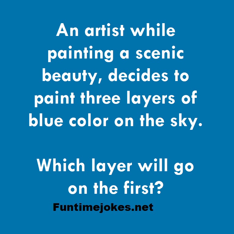 An artist while painting a scenic beauty, decides to paint three layers of blue color on the sky. Which layer will go on the first? is one of the best riddle of the day.We have best collections of riddles, You can see our best collection of Tricky Riddles with Answer