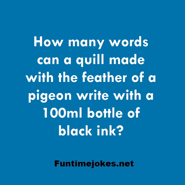 How many words can a quill made with the feather of a pigeon write with a 100ml bottle of black ink? is one of the best riddle of the day.We have best collections of riddles, You can see our best collection of Tricky Riddles with Answer