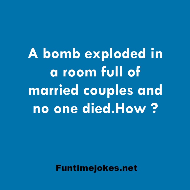 A bomb exploded in a room full of married couples and no one died.How ? is one of the best riddle of the day.We have best collections of riddles, You can see our best collection of Tricky Riddles with Answer