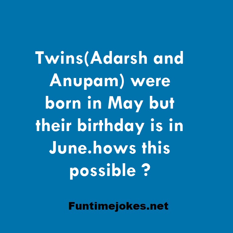 Twins(Adarsh and Anupam) were born in May but their birthday is in June.hows this possible ? is one of the best riddle of the day.We have best collections of riddles, You can see our best collection of Tricky Riddles with Answer