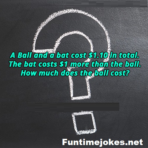 π Take the 15-Riddle Challenge (Win at 80%+)A bat and a ball cast $1.10 cents in total. The bat costs one dollar more than the ball. How much does the ball cost?